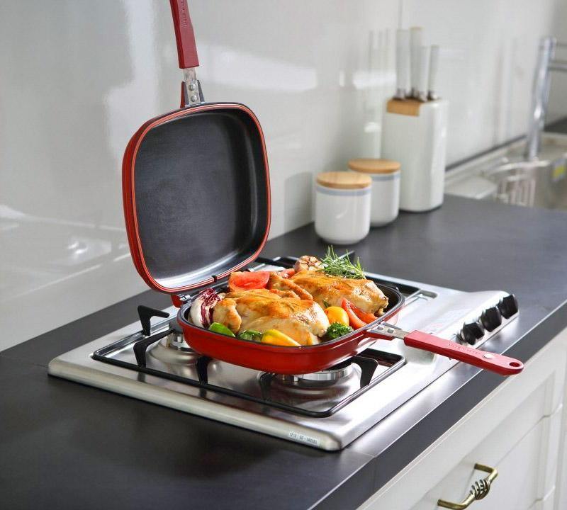 - Panela Dupla é possibilita o preparo de alimentos mais saudáveis, sem necessidade do uso de óleo e que necessitam de pouco líquido para cozinhar.