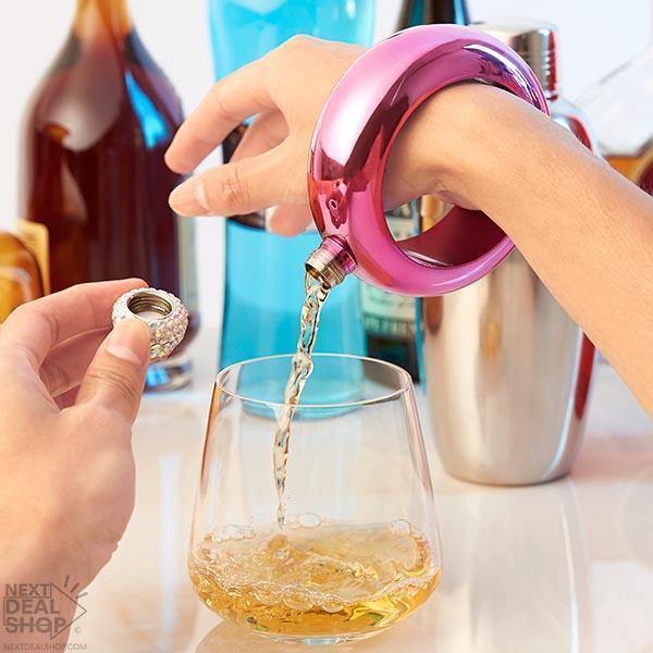 Vista sua bebida favorita em seu pulso com este Bracelete com Frasco robusto! Agora você pode ser prática e ficar na moda ao mesmo tempo. Nunca mais você terá que pagar por drinques caros nos eventos! Apenas leve o seu!